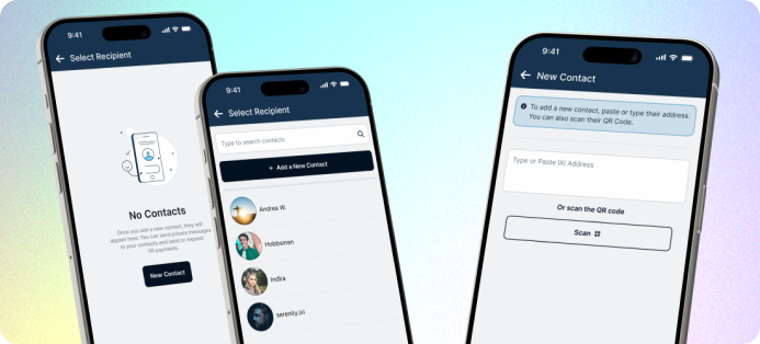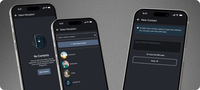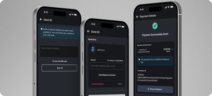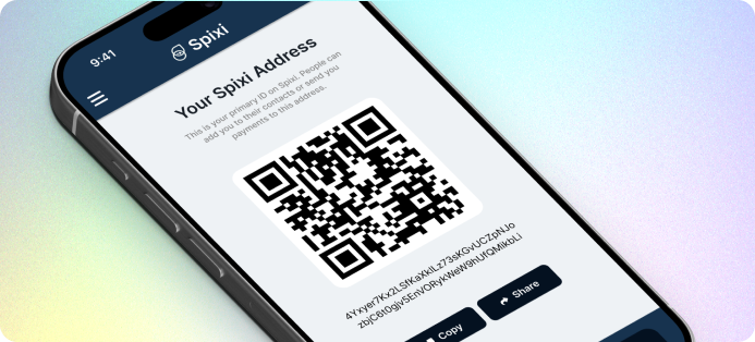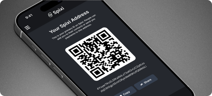 Paste their Spixi Address, IXI name or Scan their Spixi QR Code to continue.